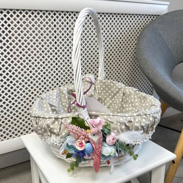 Корзинка пасхальная, украшенная цветами L/ Blue lagoon