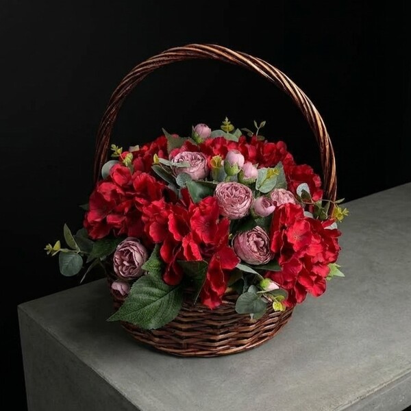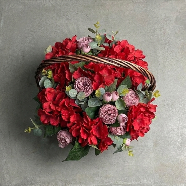 Купить Красная траурная корзина из искусственных цветов в Минске