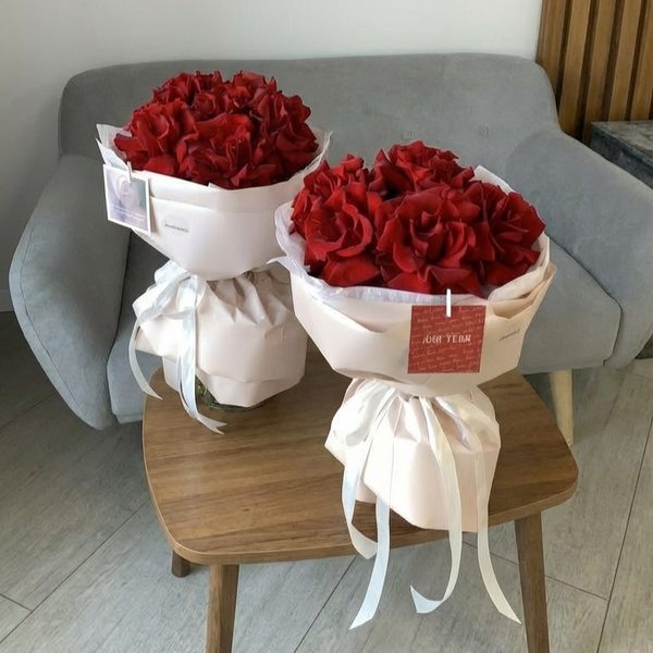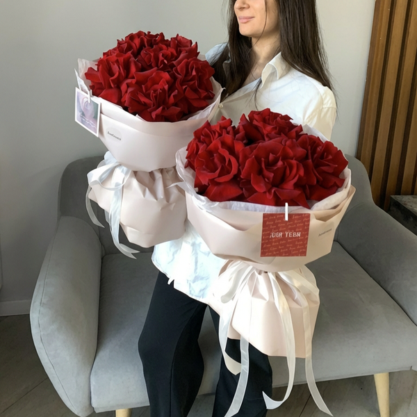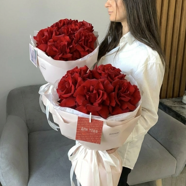 Состав: французские розы красного цвета, авторская упаковка.