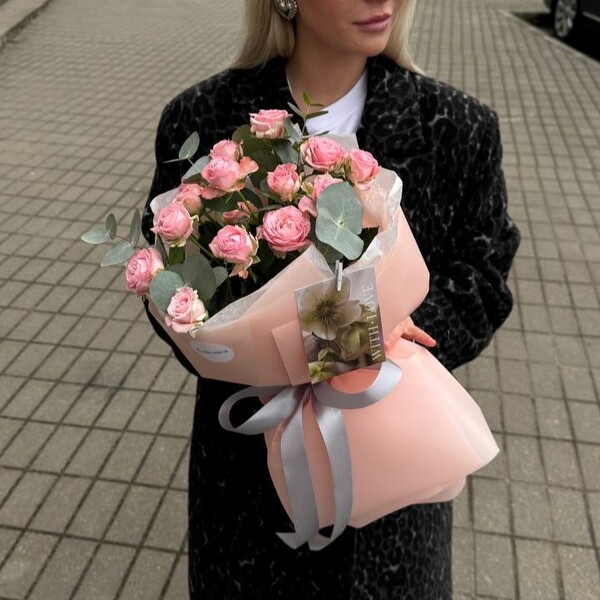 Состав: кустовые розы микс 3 ветки, эвкалипт, авторская упаковка.