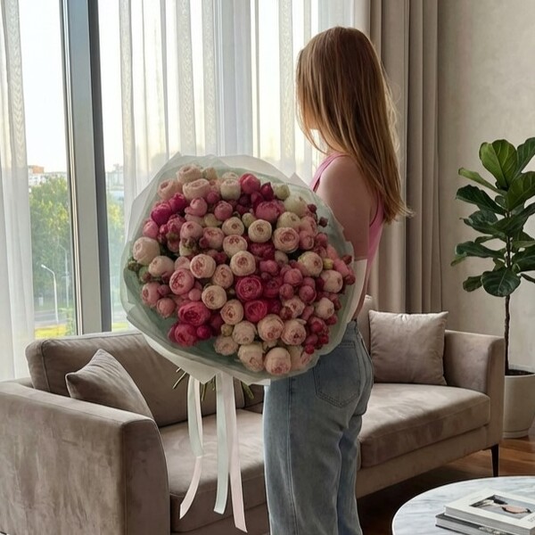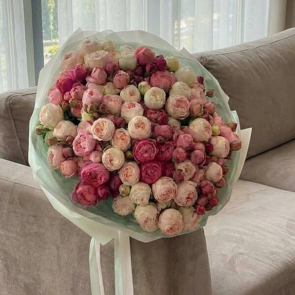Состав: кустовая пионовидная роза, авторская упаковка.