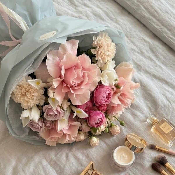 Состав: французская роза, роза кустовая, роза кустовая пионовидная, гвоздика, ирис, авторская упаковка.