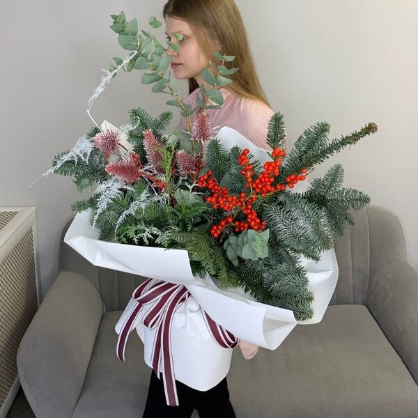 Состав: нобилис, иллекс, эрингиум, аспарагус, эвкалипт, атворская упаковка.