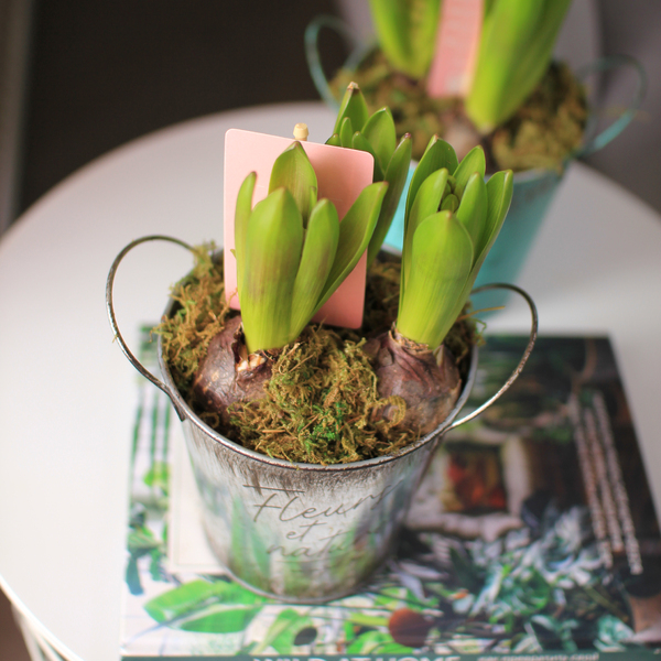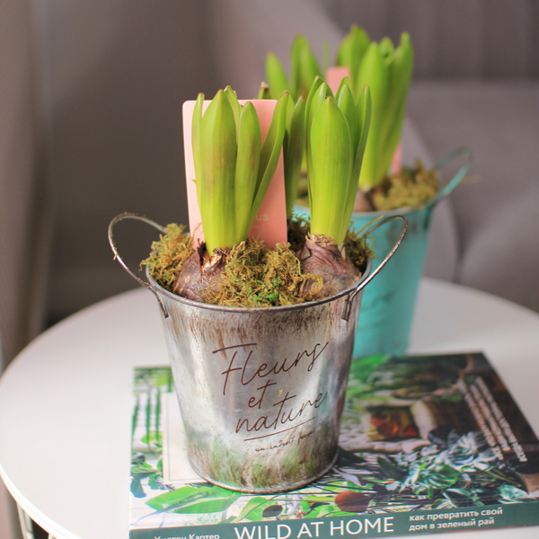 Купить Гиацинты 3 штуки в металлическом кашпо в Минске