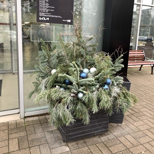 Новогоднее оформление уличного кашпо
